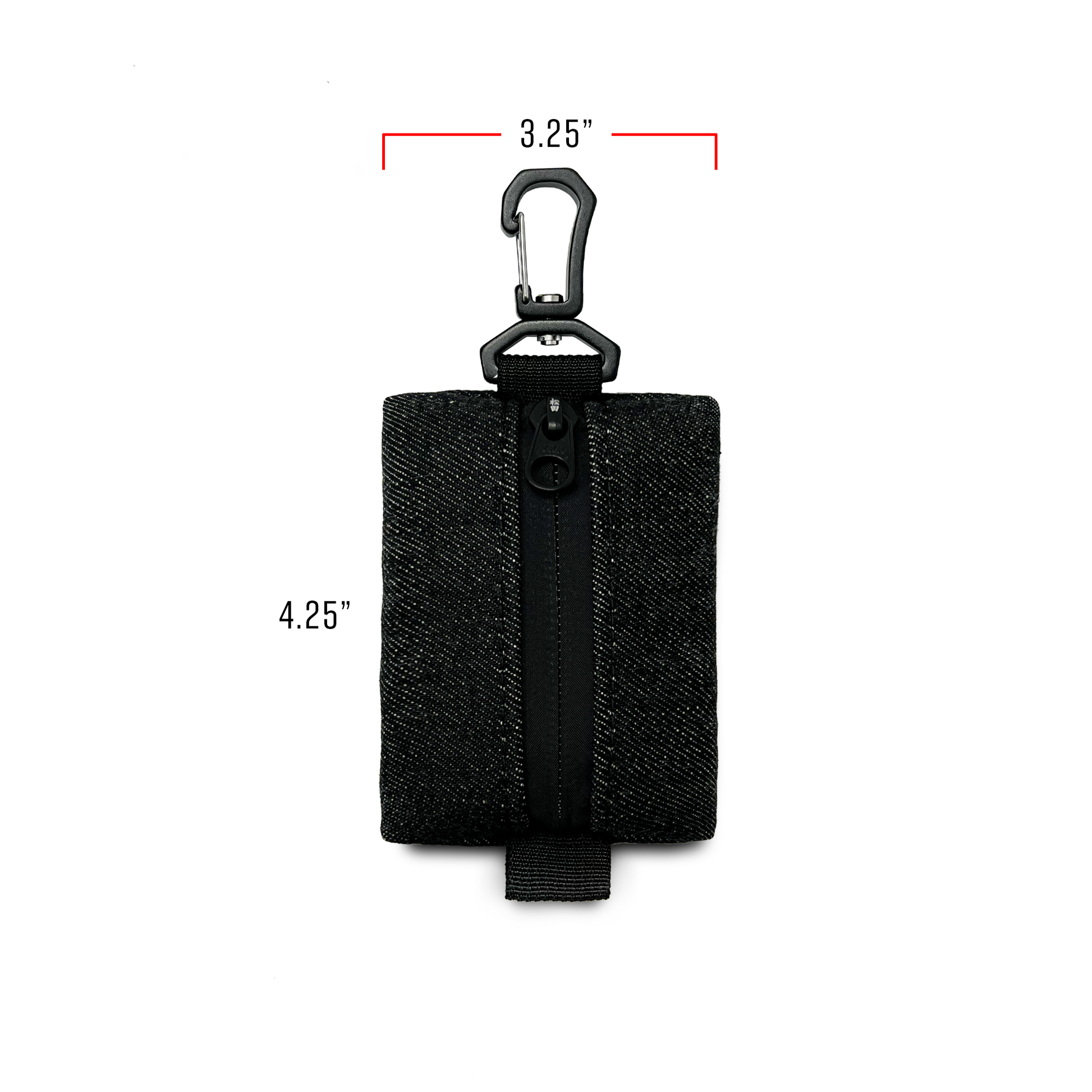 A hand made mini zipper pouch with aluminum swivel hook.