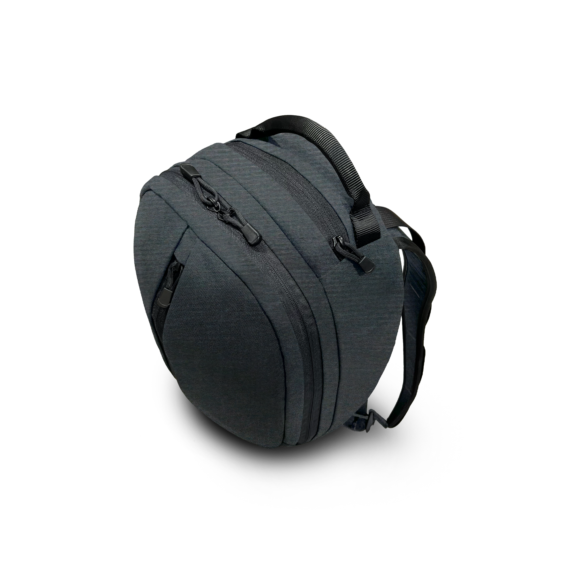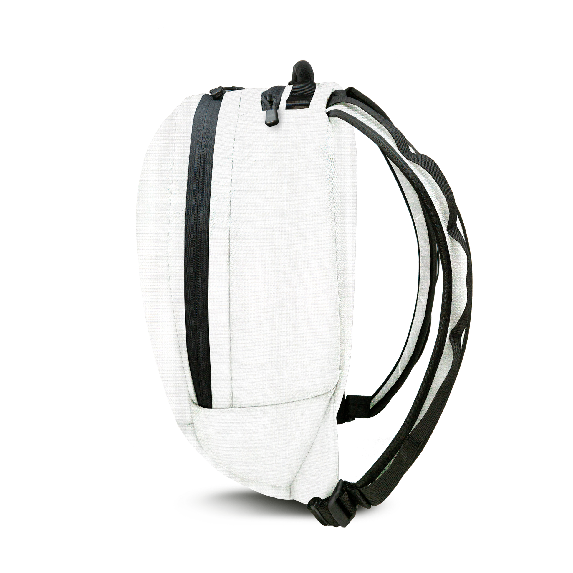 A hand-built backpack constructed from 5 oz Dyneema fabric. This special edition utilizes Dyneema on both the exterior AND interior (black-on-black or white-on-white). This backpack features a sleek capsule-shaped design with a rounded profile, offering a modern alternative to traditional flat-bottomed bags.